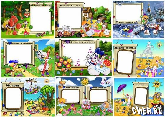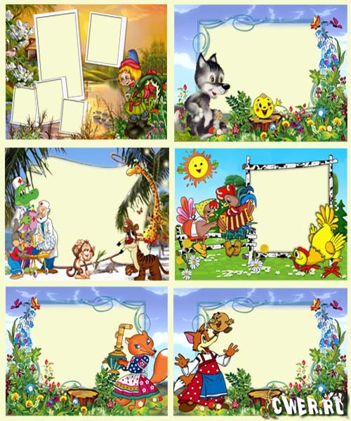 6 детских фоторамок в PNG формате, размер: 3307*2362, разрешение: 300 dpi.