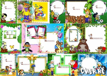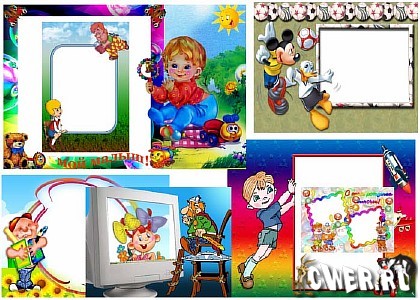 18 детских фоторамок в PNG формате, размер: 3307*2362, разрешение: 300 dpi, 107Mb