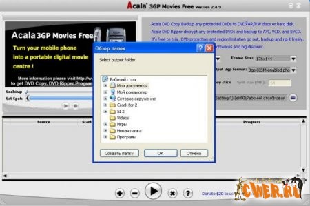 Программа, позволяющая конвертировать divx, xvid, avi, mpeg и другие форматы в 3GP, причем можно подогнать размер под объем карты на телефоне и выбрать понравившейся фрагмент из любого файла.