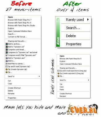 Установленно много программ? Твое контекстное меню разрослось до огромных размеров, оно похоже на свалку? Надоело искать нужный пункт? - Тогда это программа для тебя...