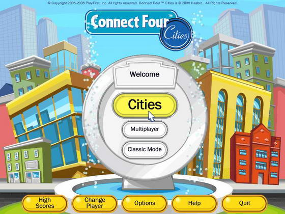 Логическая игра. Ставьте четыре свои фишки в строку прежде чем это сделает ваш соперник и смотрите как ваши города растут.