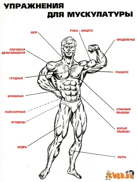 Картинки размером: 483х645, на каких нарисованно как качать ту или иную часть своего тела.