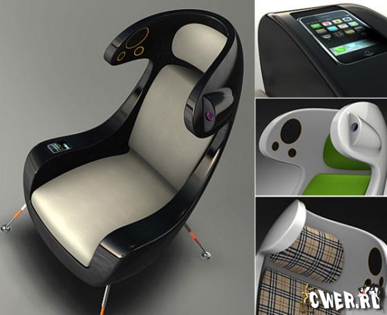 Отличный концепт для тех, кто любит очень комфортно отдыхать, представил дизайнер Martin Emila. Это замечательное кресло радует не только эргономичным дизайном, но и встроенной в подлокотник док-станцией для iPod, а также динамиками, установленными в изголовье, и проектором.
