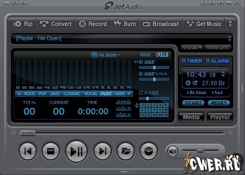 Вышла новая версия программы jetAudio - популярный бесплатный проигрыватель мультимедиа файлов. Программа поддерживает огромное число форматов, среди которых: WAV, MP3, MP3Pro, OGG, WMA, MPG, AVI, WMV, MIDI, RM и другие. При помощи этой программы можно не только слушать и смотреть медиафайлы, а также накладывать звуковые эффекты, изменять скорость просмотра видео, оцифровывать аудио диски, преобразовывать файлы из одного формата в другой и многое другое. Разработкой данной программы занимается компания COWON известная в первую очередь своими аудио-плеерами (материальными). Такой функциональности, как у бесплатной версии плеера jetAudio подчас не бывает и у платных проигрывателей. Кроме всех своих функций, данный плеер обладает очень симпатичным и удобным интерфейсом, а также поддерживает работу с субтитрами и Flash-плеерами.