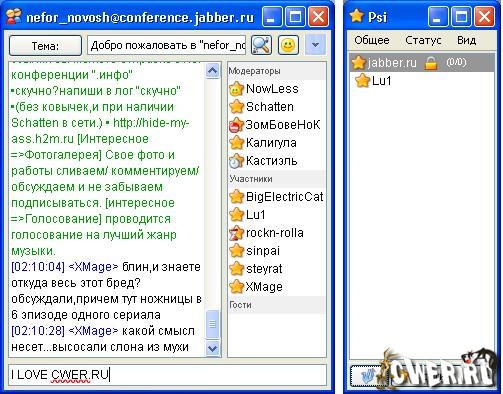Psi - кросплатформенный клиент для общения в сети по протоколу Jabber, сочетающий в себе простоту и удобство. Распространяется в исходных кодах по лицензии GPL. Вы можете использовать Psi как под Windows, так и под Linux и также под MacOS. Причём можно использовать одни и теже профайлы (файлы с настройками), что позволит вам менять ОС и оставлять свои любимые настройки для клиента. Кроме того, в Psi есть возможность в одном окне держать много акккаунтов. Это удобно при использовании джабера несколькими людьми одновременно за одним компьютером. Psi обладает продуманным интерфейсом и надежна в работе.