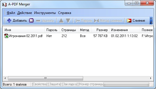A-PDF Merger - является эффективным инструментом, чтобы помочь вам объединить несколько PDF файлов в один для лучшей организации, хранения и печати. Программа позволяет выбрать любые страницы из выбранных PDF файлов и объединить, создав новый документ.