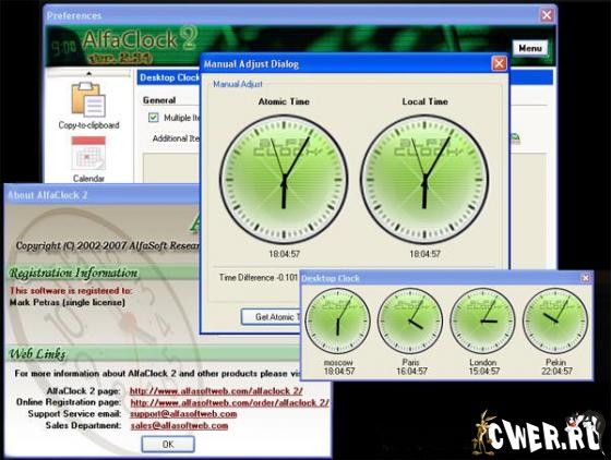 Используя программу AlfaClock вы можете полностью изменить внешний вид системных часов (обычно расположенных в правом нижнем углу экрана). "Стандартные" часы практически бесполезны, т.к. отображают только текущее время (часы:минуты) и, к тому же, используют для этого весьма мелкий шрифт.
