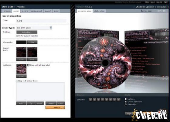 Программа для создания трехмерных изображений DVD-коробок. IMANDIX Cover позволяет создавать коробки различных стандартных размеров, генерировать сразу несколько DVD-коробок на одном изображении и просматривать созданные модели в трехмерном виде.