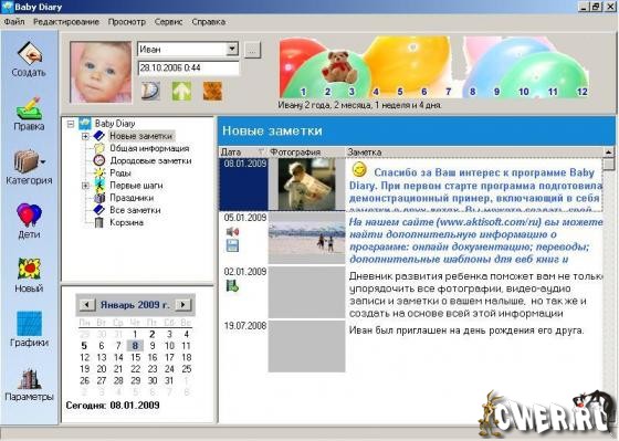 Как только в семье появляется ребёнок, он неизбежно становится центром вселенной. Мы живём ради своих детей. Мы живём их судьбой. Мы живём их будущим… Программа Baby Diary поможет составить целую летопись взросления вашего ребёнка от самого рождения (и даже до него).