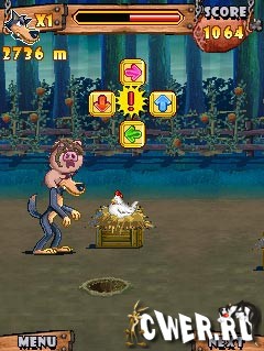 Захватывающая игра, поскольку вы выполняете дьявольский план волка завоевания свиньи, чтобы поесть. Сначала он ломает забор, чтобы войти в ферму, он должен спокойно пробиться через других животных. Затем он отвлекает свинью, и наконец со свиньей на его голове он мчится домой, чтобы подготовиться к ужину.