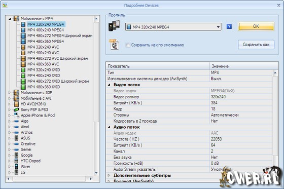 - MP4 файлы для форматов iPod/iPhone/PSP/BlackBerry