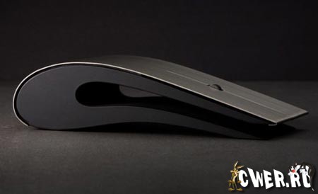 В манипуляторе используется лазерный датчик. Устройство подключается к ПК с помощью беспроводного интерфейса Bluetooth. Питание мыши не совсем привычной формы обеспечивают два элемента типоразмера AAA.