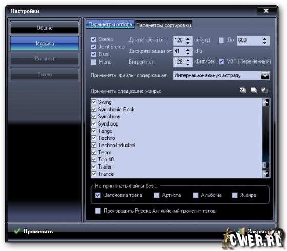 - MP3 Отбор по заданным критериям, чтение и правка ID3-тэга, прослушивание и сортировка, так же по заданным критериям.