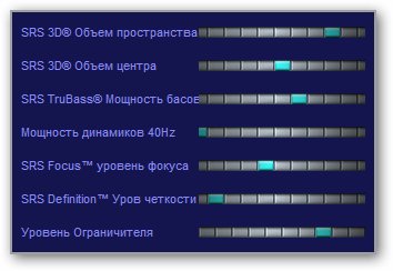 - SRS Dialog Clarity - делают вокалы легче понимаемыми через окружающие звуковые эффекты (для кинофильмов и видео).