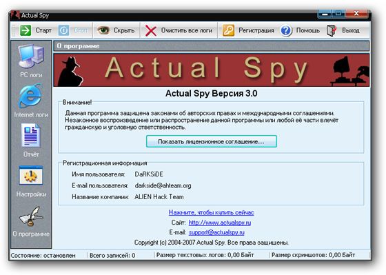 Скачать программу Actual Spy 3.0 (2,01 МБ):