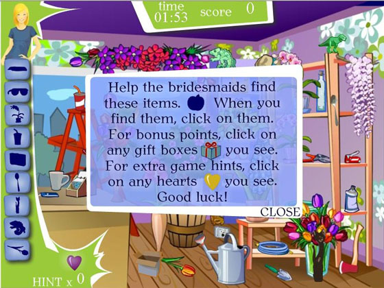 Две коротенькие флэшовые игрушки в жанре "Я ищу" о предсвадебной подготовке, подружках невесты, которые всё оставили на последнюю минуту. А также о старинной свадебной примете: что-то новое, что-то старое, что-то одолженное и что-то синее.