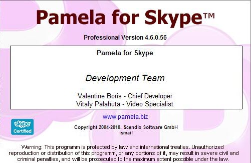 Обновилась одна из самых известных утилит для Skype, а точнее целый набор утилит - Pamela for Skype. Программа уже давно известна пользователям Skype, как наиболее продвинутый менеджер звонков. Основными функциями Pamela for Skype являются: автоответчик для Skype, запись голосовых Skype звонков, запись видео вызовов, полная запись текстовой переписки, перенаправление Skype звонков и много других полезных утилит.