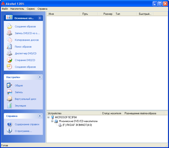 Записывает максимально комфортабельно произведенные с чуждыми программами имиджи данных! При этом поддерживает ALCOHOL 120 % 7 почти все типы файла имиджа, включительно MDS, CCD, BIN, CUE, ISO, CDI, BWT, BWI, BWS, BWA и, и, и.