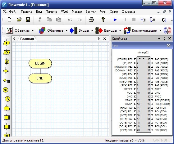 Flowcode - среда разработки с интуитивно понятным графическим интерфейсом, позволяющая разрабатывать программы для AVR - микроконтроллеров на уровне блок-схем. Среда позволяет Вам легко и просто создавать программы, путём простого перетаскивания и отпускания необходимой иконки на блок-схеме.