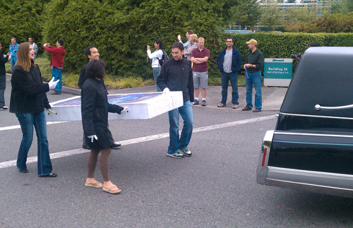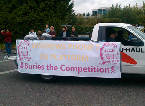 Сотрудники Microsoft в честь выпуска Windows Phone 7 похоронили BlackBerry и iPhone