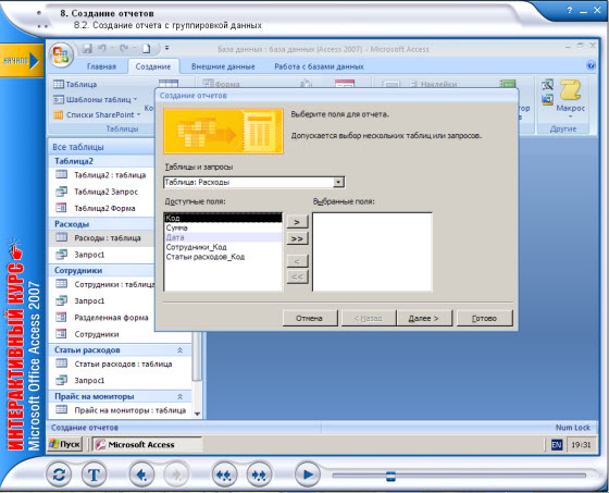 Интерактивный курс Microsoft Access 2007 состоит из видео уроков и подробных комментариев с помощью которых вы легко и быстро овладеете навыками работы с программой MS Access 2007, сможете подробно изучить интерфейс и весь спектр предоставляемых ею возможностей.