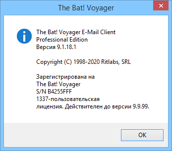 По версии 9.1.18... На hitfile.net загрузки перепутаны местами. Вместо The Bat! Professional скачивается The Bat! Voyager 9.1.18.1 и наоборот. Остальное не проверял...