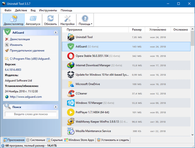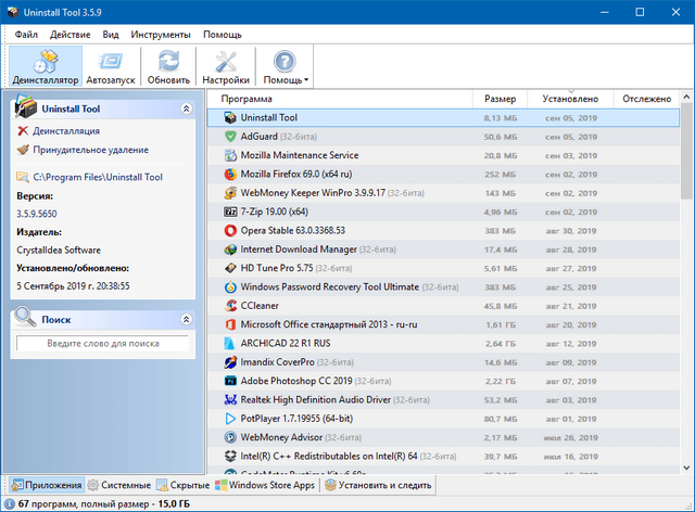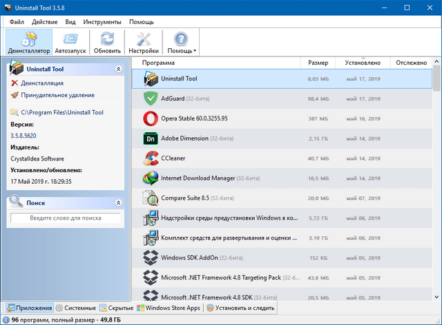 - Просмотр детальной информации о любой программе, установленной на вашем компьютере