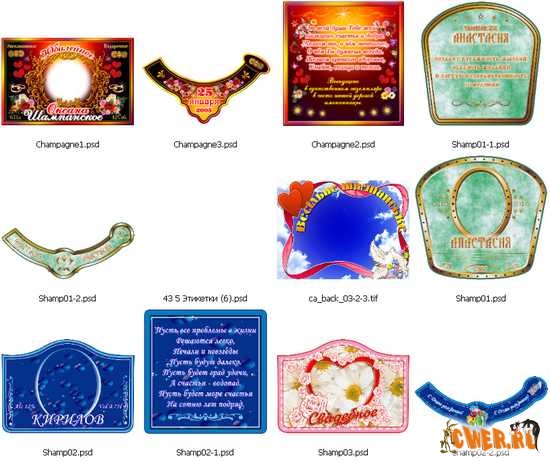 13 этикеток для шампанского в PSD формате, слои включены, шрифты в архиве