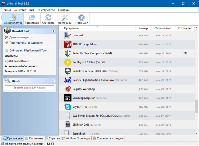 - Просмотр детальной информации о любой программе, установленной на вашем компьютере