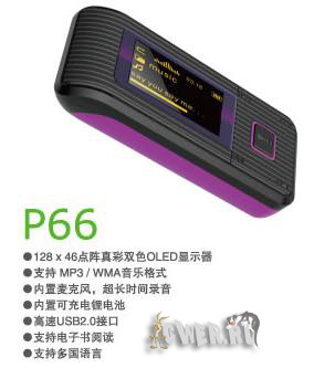 Схожей с предыдущими моделями функциональностью обладает и плеер AY-P66 – 1-дюймовый OLED-экран, поддержка MP3, WMA, WAV, запись звука, просмотр текстов песен и поддержка чтения электронных книг. Дизайн новинки чем-то напоминает лодку, и, видимо, символизирует корабль, бороздящий просторы океана музыки.