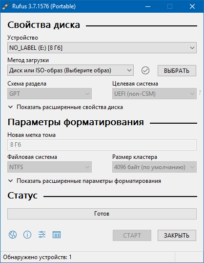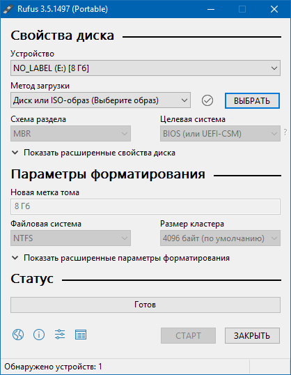 Скачать портативную версию Rufus 2.18 Build 1213 Final (0,9 МБ):