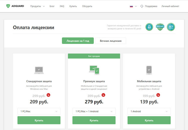 Перешел на главный сайт адгуарда и с главной страницы нажал кнопку купить.
