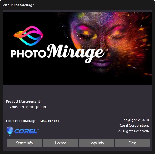 Corel PhotoMirage поддерживает основные формата изображений, такие как JPEG, BMP, GIF, TIFF, PNG и более 450 форматов RAW. Экспорт делается в формате GIF, WMV, H.264 и HEVC (понадобится Windows 10). Сама программа работает в ОС Windows начиная с Windows 7 и во всех последующих. Полученное изображение можно просмотреть, затем сохранить или поделиться непосредственно на таких платформах, как Instagram, в соц. сетях или по электронной почте.