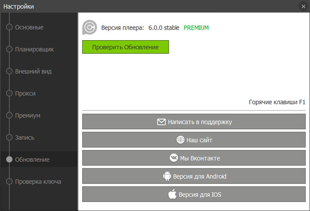 - В настройках добавлено окно показывающее информацию о текущем ключе "премиум" и дате окончания