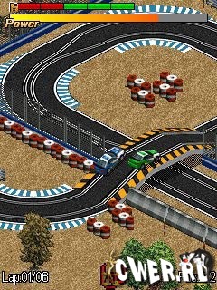 Веди свою машину по треку, не забывая притормаживать перед поворотами, и набирать скорость на прямых. И не стоит брать соперника на таран - это может повлечь дисквалификацию обоих. Размеры экранов: 128x128, 128x160, 240x320, 240x320 S40v3.