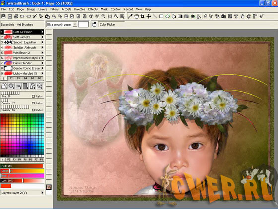 TwistedBrush Open Studio - графический редактор с рядом уникальных инструментов. Разработчики уверяют, что таких кистей больше нет ни у кого. Кроме того вы найдете слои, маски, фильтры и все прочие атрибуты профессионального графического редактора.