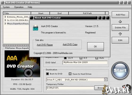 Скачать AoA DVD Creator v2.1.5 (9.84 МБ):
