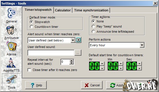 Speaking Clock Deluxe - одна из множества популярных утилит загружаемых в интернете, которая не только превращает ваш компьютер в говорящие часы с поддержкой около 30 языков, по умолчанию 5-ти, включая русский, но и имеет говорящий калькулятор, таймер прямого и обратного отсчета, 50 будильников с различной переодичностью повторения, ежечастный сигнал, атомный синхронизатор системного времени, гибкие внешние настрой, "говорилку" - функция перевода текста в речь и многое другое. Дополнительные языковые модули можно загрузить с сайта компании.