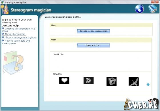 Stereogram Magician - мощная и легкая в использовании программа для создания картинок-стереограмм. Вы наверняка уже видели некоторые картинки-стереограммы, которые, если вы правильно сосредоточите на них свой взгляд, превращаются в настоящие 3D изображения. Теперь, с помощью этой программы, вы сможете создавать собственные картинки-стереограмы всего за несколько минут. Программа имеет встроенные примеры стереограмм и имеет встроенный редактор для создания собственных стереограмм. В редакторе имеется также встроенный конвертер из 3D файлов (3DS и X) в растровый BMP формат. Стереограммы создаются пошагово в формате Мастера - сначала вы выбираете или создаете собственную картинку, затем указываете паттерн и после чего, выбрав качество трехмерной глубины, создаете стереограмму, которую можно сохранить в BMP формат.