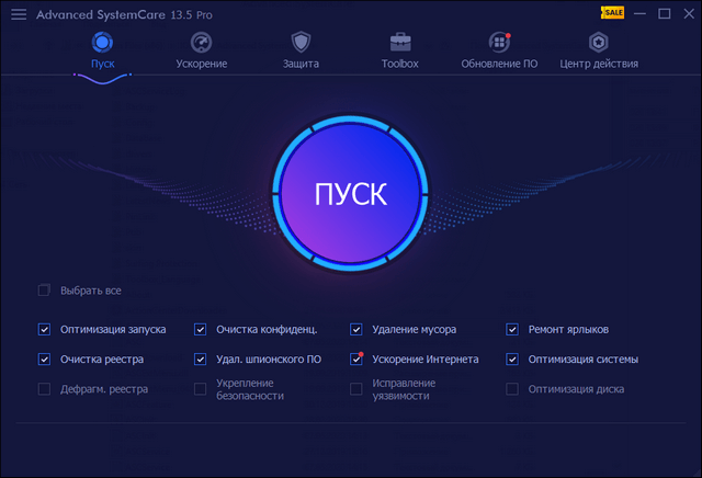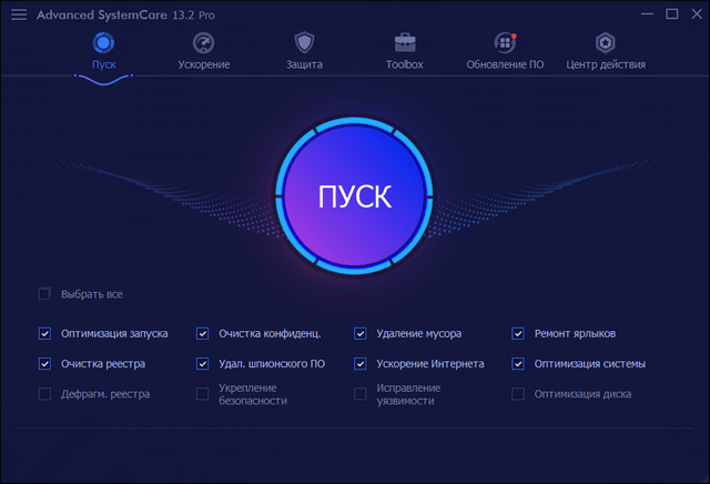 Advanced SystemCare - программный пакет, содержащий множество модулей для оптимизации, настройки и повышения производительности компьютеров, на базе ОС Windows 2000/XP/Vista/7/8/10. Приложение позволяет очистить компьютер от шпионского и рекламного ПО, найти и ликвидировать возможные угрозы и бреши в системе безопасности ОС, исправить ошибки в системном реестре, очистить временные и ненужные файлы, управлять списками автозагрузок, оптимизировать работу ПК.
