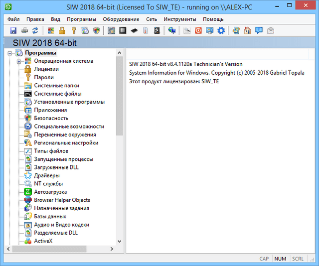 Небольшая утилита, сообщающая подробные данные об аппаратных средствах компьютера, установленном программном обеспечении, а также сетевую информацию. По своему функционалу SIW схож с популярной программой Everest, но, в отличие от нее, бесплатен (при некоммерческом использовании) и при этом содержит в себе несколько уникальных функций - для удаленного выключения\перезагрузки рабочей станции, взлома пароля Windows 9x, смены MAC-адреса сетевого устройства и некоторые другие.