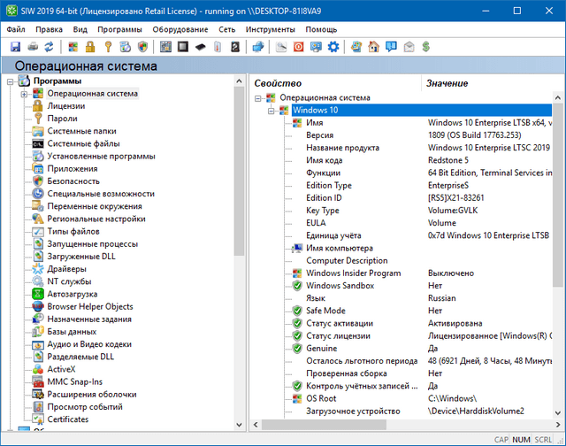 AIDA64 представляет из себя мощное средство для определения и тестирования практически любых компонентов персонального компьютера под управлением операционных систем семейства Windows. Приложение сообщит вам подробную информацию обо всем аппаратном и программном обеспечении, а кроме этого, при помощи встроенных модулей для тестирования и калибровки сможет провести дополнительную проверку отдельных подсистем ПК. Выводит подробные сведения обо всем аппаратном и программном обеспечении, имеющемся в системе.