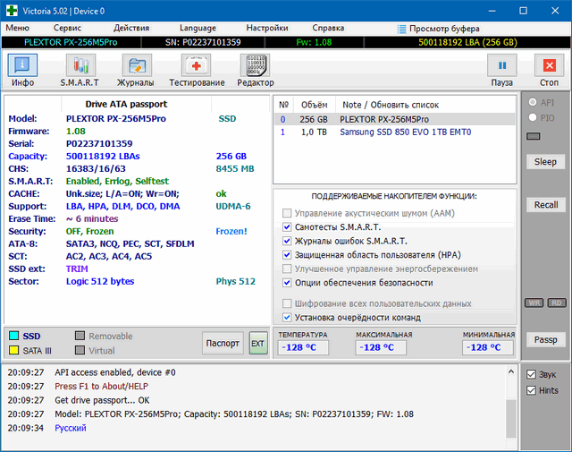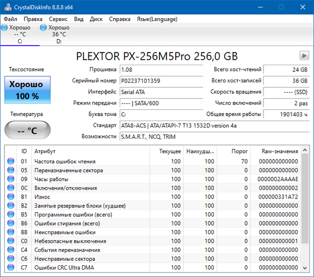 CrystalDiskInfo – следит за «здоровьем» жестких дисков, поддерживающих технологию самодиагностики S.M.A.R.T. Осуществляет мониторинг и дает общую оценку состояния вашего диска. Также выдаёт подробную информацию о жестких дисках, установленных в компьютере (прошивка, серийный номер, стандарт, интерфейс, общее время работы и др.) и выводит параметры атрибутов S.M.A.R.T. (ошибки чтения, производительность, запуски/остановки шпинделя, время поиска дорожки, количество циклов включения-выключения, ошибки секторов и многое другое). Может выводить в трее индикаторы с температурой каждого накопителя, строит график изменения температур. Позволяет управлять настройками производительность/шум.