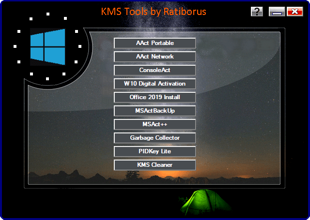 KMSOffline - активатор от Ratiborus, который может активировать Windows XP, Windows Vista, 7, Windows 8, 8.1, 10, Server 2008, 2008 R2, 2012, 2012 R2, 2016, 2019, Office 2010/2013/2016/2019.