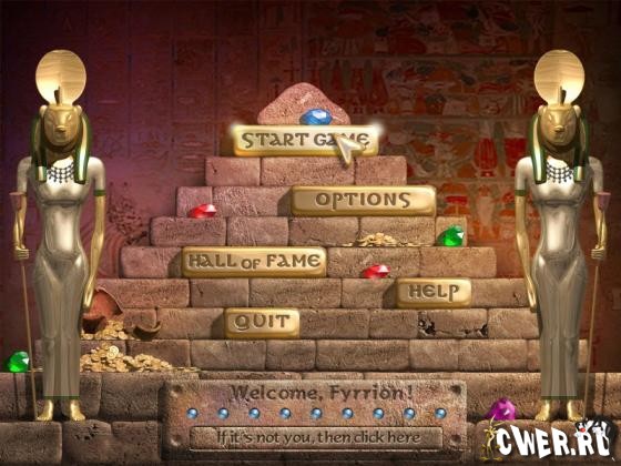 В этой игре вам предстоит отправиться в древний Египет и пройти 150 трудных уровней. Цель игры проста – уничтожить на доске цветные метки, соединяя поверх них по три камня одного цвета. Камни помещаются на игровое поле с помощью стрелок, расположенных вокруг доски. Примите вызов фараона. Соединяйте камни с иероглифами, чтобы обнаружить потрясающую золотую пирамиду!