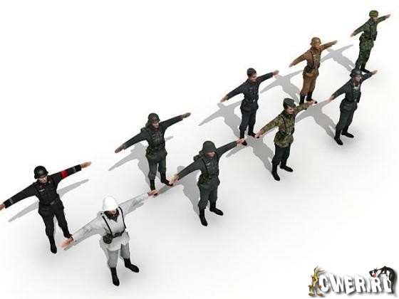 В комплект входит: набор Дойчен Зольдатен относящихся к различным видов войск, набор необходимых предметов и амуниции что бы начать маленькую оккупацию соседней небольшой республики и два лоу-польных ландшафта дорог и разрушенного квартальчика для отработки ТСП приближенной к боевой на местности.