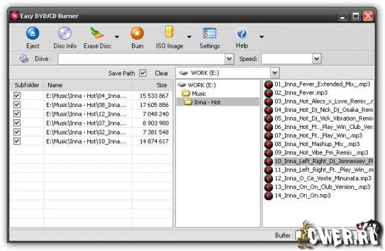 Easy DVD/CD Burner - предназначена в первую очередь для легкого создания и прожига DVD и CD дисков. Поддерживает большинство пишущих приводов, проверку записи, прожиг на лету, Joliet лог файлов, а также поддержка CD-R, CD-RW, DVD+R, DVD+RW, DVD-R, DVD-RW, DVD-RAM дисков. Также программа позволяет создавать ISO файл образы с последующим прожигом, создать мультисессионные и мультизагрузочные CD, имеет ряд технологий (BURN-Proof, Just Link, OPC technologies) для качественного прожига.