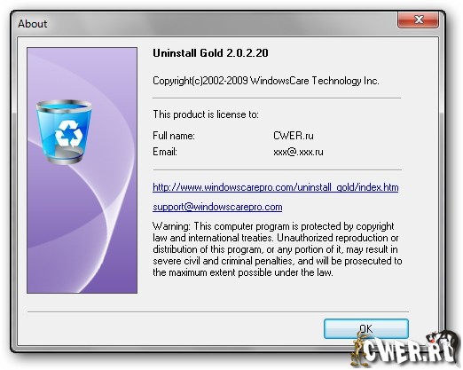 Скачать программу WindowsCare Uninstall Gold 2.0.2.20 (2 МБ):