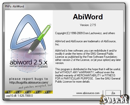 Скачать программу AbiWord 2.7.5 Dev (7,57 МБ):