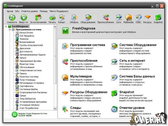 Fresh Diagnose детально изучит все компоненты вашей системы и выдаст подробную информацию, которую можно сохранить в различных форматах (TXT, HTML, DOC). Интересной функцией в этой программе является сравнение данных вашего компьютера с эталонными данными других систем. Все результаты выводятся в наглядной и удобной форме. Программа содержит тесты производительности (benchmarks) для процессора, видеокарты, жёстких дисков, оперативной памяти и других устройств. Утилита хоть и бесплатна, но требует регистрации на сайте производителя. После регистрации на ваш адрес электронной почты придет код, которым нужно произвести активизацию программы.